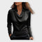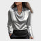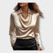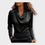 Tato saténová blůza nabízí jedinečný lesk a pocit luxusu. S límcem a drapovaným výstřihem, který lichotí postavě, je ideální volbou do kanceláře, na profesionální schůzky a speciální příležitosti.