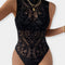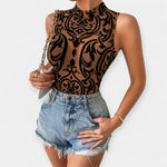 Předveďte svou dynamickou stránku s tímto geometrickým bodysuitem vyrobeným z krajkového materiálu. Elastický, lehký a naprosto ženský, je ideální pro úchvatné vzhledy po celý rok.