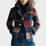 Elegantní kostkovaný kabát s knoflíky