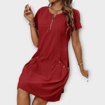Mini šaty s krátkými rukávy a zipem na výstřihu