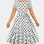 Bílé šaty s černými puntíky dokonale vyvažují eleganci a retro kouzlo. Ideální pro jakoukoli část dne, nabízejí pohodlí a působivý vzhled.
