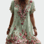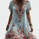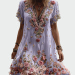 Přijměte romantiku s těmito vzdušnými šaty, zdobenými bohatou výšivkou a texturovanými květinami v růžových tónech. Ideální volba pro zvláštní příležitosti a letní výlety.