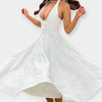 Midi šaty s odhaleným zadním dílem a korzetovým designem