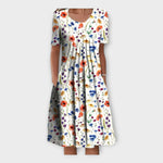 Tyto šaty s květinovým vzorem nabízejí jedinečný pocit svobody a ženskosti. S pohodlným střihem, krátkými rukávy a kapsami, které přidávají praktičnost, jsou ideální volbou na procházky, kávu nebo každodenní aktivity se stylem.