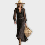 Maxi šaty s průhlednými rukávy a knoflíkovým zapínáním