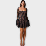 Romantické, ženské a bez námahy okouzlující — tyto krajkové šaty jsou navrženy tak, aby vás učinily nezapomenutelnou. Jemné průhledné rukávy a jemná květinová krajka vytvářejí elegantní kontrast, zatímco přiléhavý korzet krásně zvýrazňuje vaši postavu.
