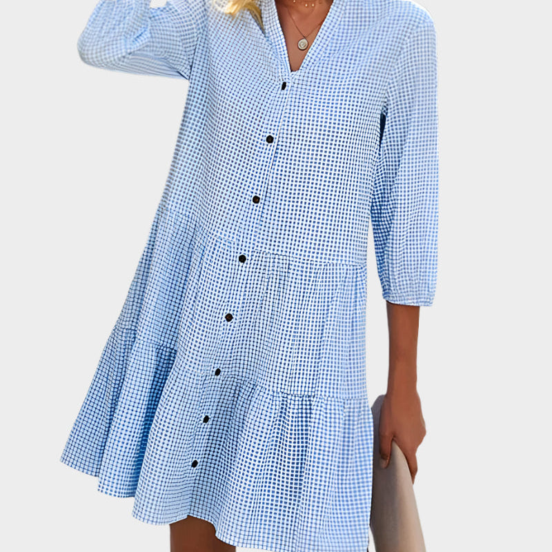 Lehký a lichotivý letní šaty s kostkovaným vzorem