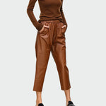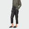 Černá Jednoduchost je pár kalhot, které kombinují moderní styl a pohodlí. Jejich kožená textura jim dodává dynamický vzhled, zatímco uvolněný střih je činí ideálními pro každodenní i více elegantní vzhledy.