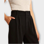 Vstupte do každodenní elegance s těmito kalhotami s vysokým pasem. Navrženy s elegantním, prodlouženým siluetem a jemnými sklady, nabízejí lichotivý střih, který zvýrazňuje vaši přirozenou postavu. Široký střih nohavic dodává nádech sofistikovanosti a zároveň poskytuje bezproblémový pohyb, což je činí ideálními jak pro práci, tak pro volný čas.