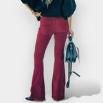 Elegantní a nadčasové, tyto kalhoty vylepšují siluetu vysokým pasem a rozšířenou linií. Ideální pro jakoukoli příležitost, nabízejí pohodlí a styl s jedinečnou lehkostí.