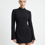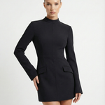 Šaty ÉLYSE Mini mají čistý vysoký výstřih, tvarovaný pas a jemně rozšířené manžety, které zvyšují jejich minimalistickou siluetu. Strukturované, ale přesto bez námahy, tento kousek je navržen tak, aby oslnil s tichou sebevědomostí — ideální pro elegantní dny nebo rafinované večery.
