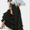 Lehká a nápadná, tato vrstvená tylová sukně spojuje romantiku a eleganci. S vysokým pasem a klasickým áčkovým střihem poskytuje pohyb a sofistikovanost s každým krokem, což ji činí ideální pro zvláštní příležitosti.