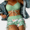 Bikini, které vyzařuje letní živost a styl. Design s vysokým pasem obepíná siluetu a nabízí podporu, zatímco boční šňůrky a výrazné tropické vzory dodávají hravý, exotický pocit.