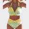 Předveďte svůj styl a ženskost s těmito úchvatnými bikiny s vysokým pasem v pastelovém leopardím vzoru. Zlatý detail mušle a elegantní halter top zajišťují glamourový a pohodlný vzhled.