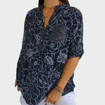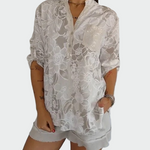 Dámská **modrá košile s květinovým vzorem**, která nabízí eleganci a pohodlí pro každou příležitost. Lehká tkanina a uvolněný střih ji činí ideální pro teplé dny, zatímco náprsní kapsa dodává jemný styl. Můžete ji kombinovat s šortkami, džíny nebo bílými kalhotami pro kompletní letní vzhled.