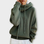 Pohodlný uvolněný svetr s rolákem a šňůrkou
