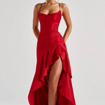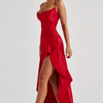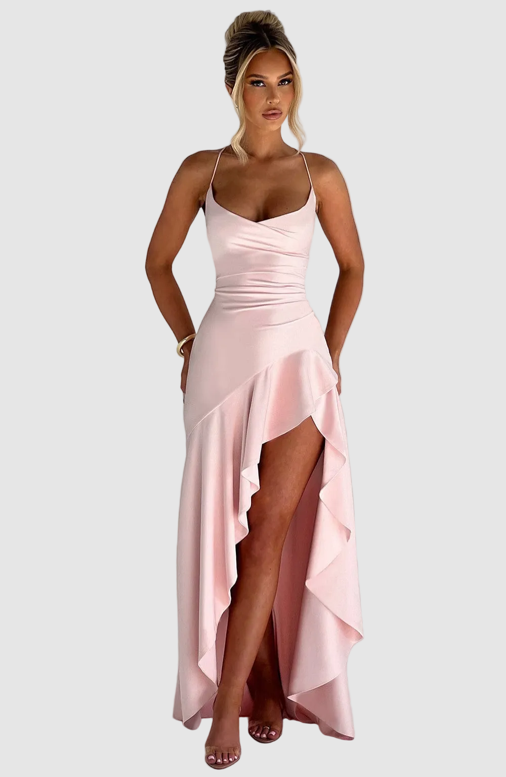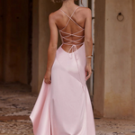 Nastavitelné křížové vázání na zádech a jemně splývavý výstřih vytvářejí fit, který se zdá být šitý na míru. Ať už se rozhodnete pro jemnou a romantickou růžovou nebo plnou bombu v saténově červené, tyto šaty se pohybují jako tekutina a fotografují se jako sen.