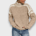 Svetr Rosalie poskytuje příjemné teplo díky směsi prémiové vlny, která jemně obepíná siluetu, aniž by ji zatěžovala. Jeho severský vzor mu dodává nadčasovou eleganci, která mu propůjčuje charakter, přičemž zůstává decentní a rafinovaný.